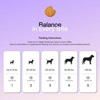 Feed up to 1 Magic Cookie per day for every 20lbs. Use for intermittent or supplemental feeding only and do not exceed recommended amounts.