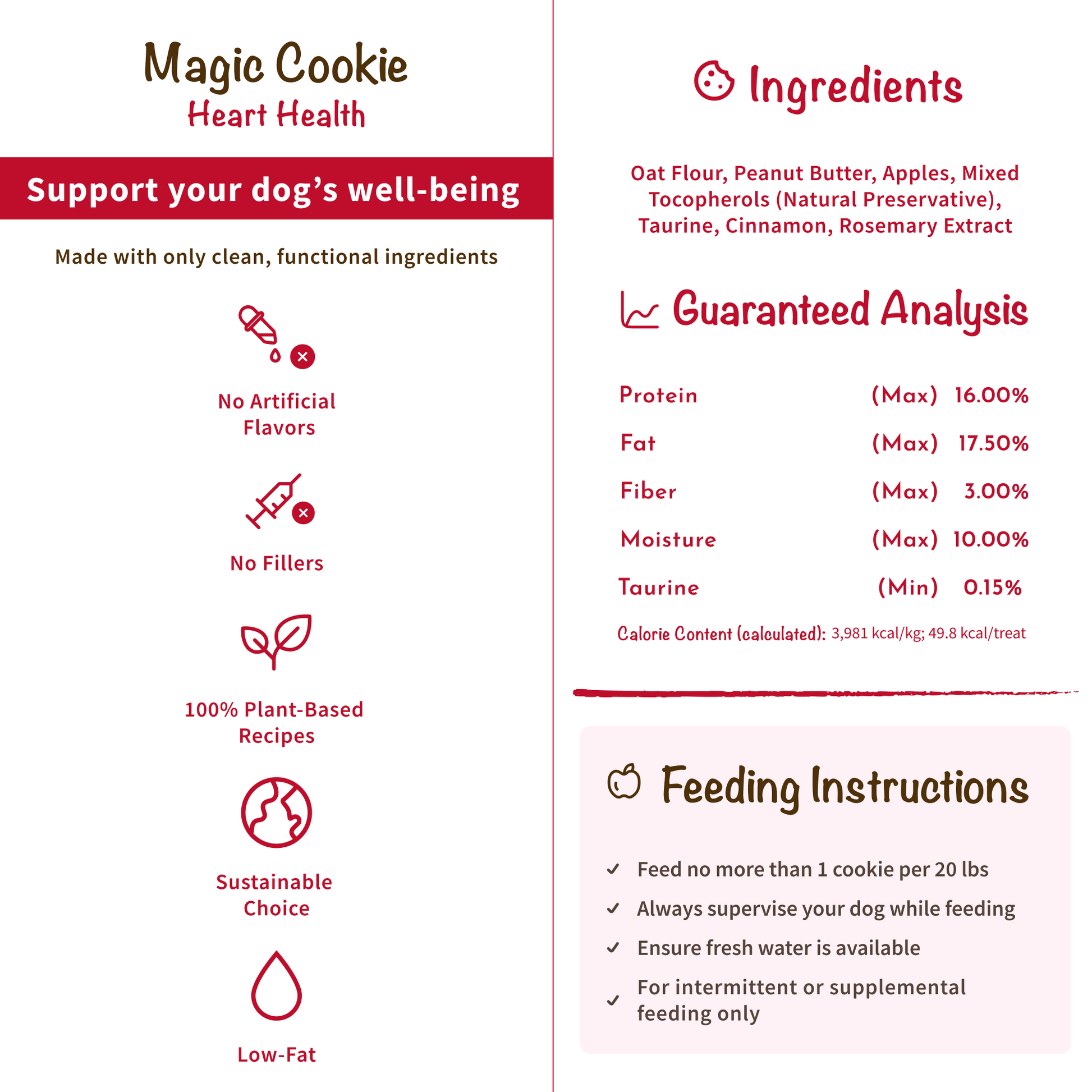 A heart-smart treat with clean, functional ingredients to support long-term heart wellness. Perfect for active dogs who need daily vitality.