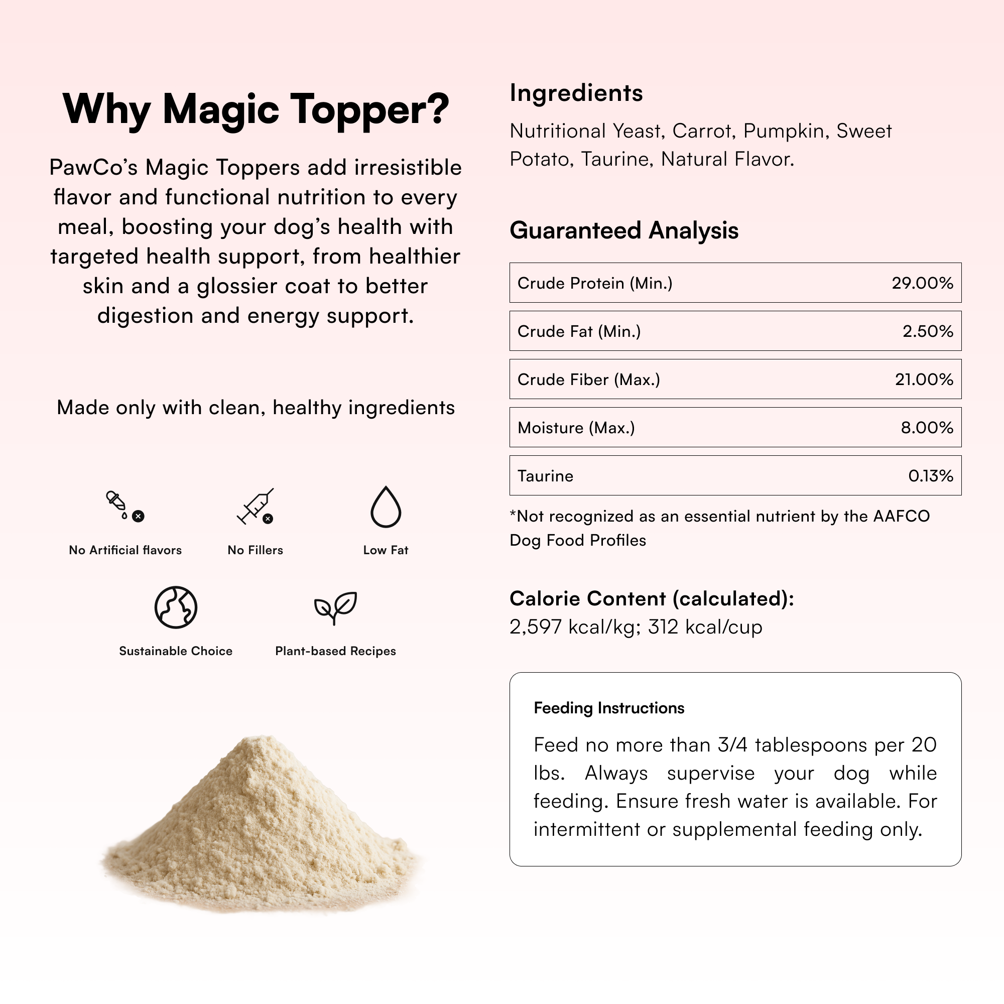 - Do not feed more than 3/4 tablespoons of powdered PawCo MagicTopper for every 20 lbs.
