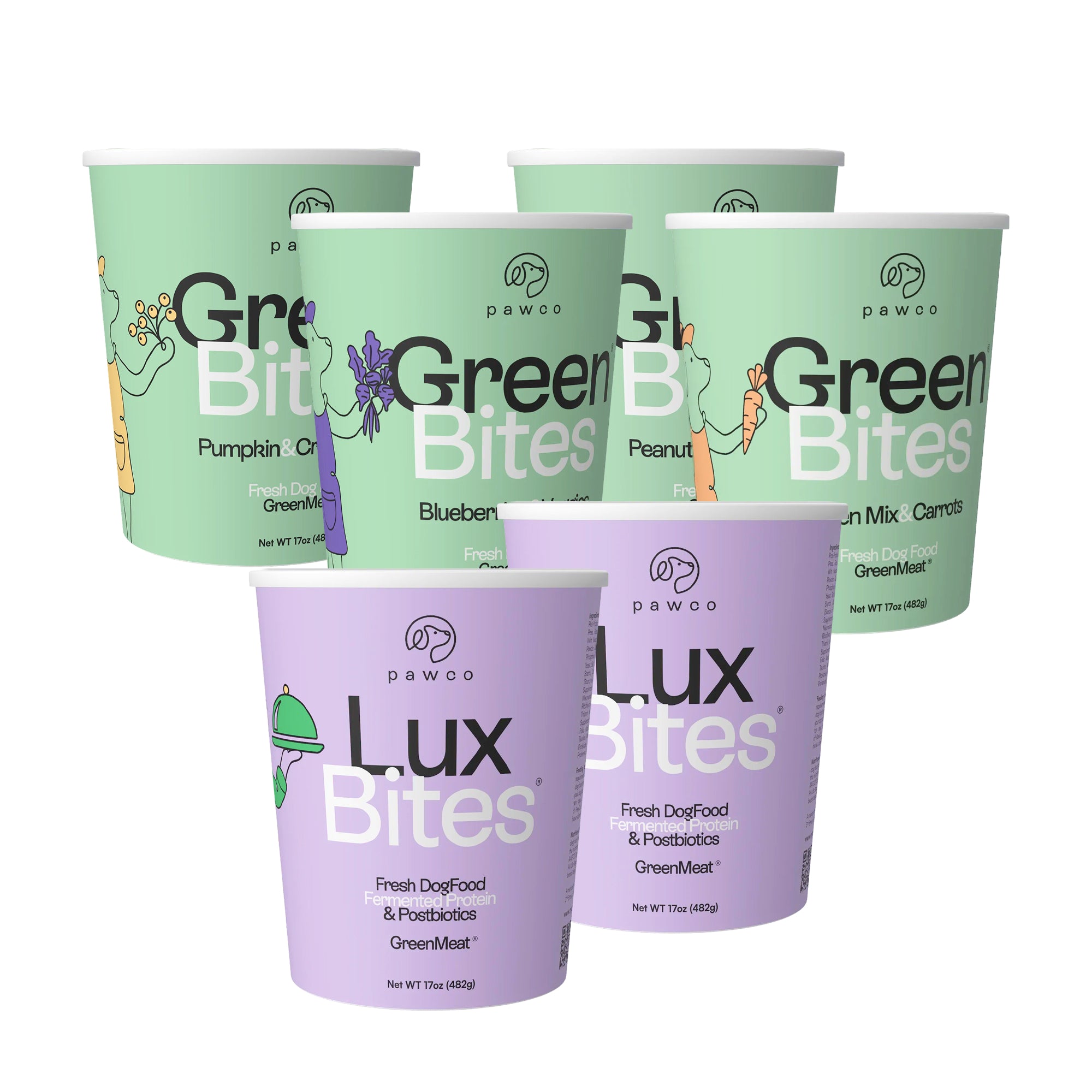 The Fresh Food Variety Box lets your pup sample each of our fresh meals between our ultra premium LuxBites™ & premium GreenBites recipes to see what they enjoy most. Each meal nourishes your dog with balanced, human-grade recipes designed for daily wellness and long-term vitality.